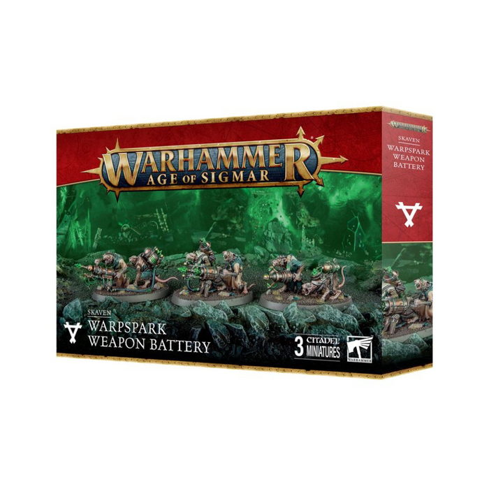 Warpspark Weapon Batteries are cunning agents of Clans Skryre, often hidden among waves of frenzied Clanrats until the perfect moment to strike. Then, with a burst of arcane energy and a whir of machinery, they unveil their strange and deadly contraptions, devastating enemies in the name of the Horned Rat.